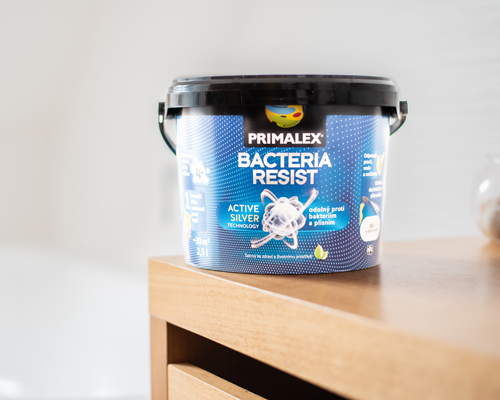 Speciální interiérová barva Primalex Bacteria Resist je interiérový vysoce kryvý a odolný nátěr, která obsahuje technologii ACTIVE SILVER. Ta zamezuje růstu bakterií a plísní na povrchu nátěru. Kam je ideální tuto barvu použít? Doporučuje se proto zejména do nemocnic, klinik, lékařských ordinací, operačních sálů, školek, škol, hotelů a restaurací, ale i domácností, kde chceme klást důraz na čistotu a hygieničnost prostředí.