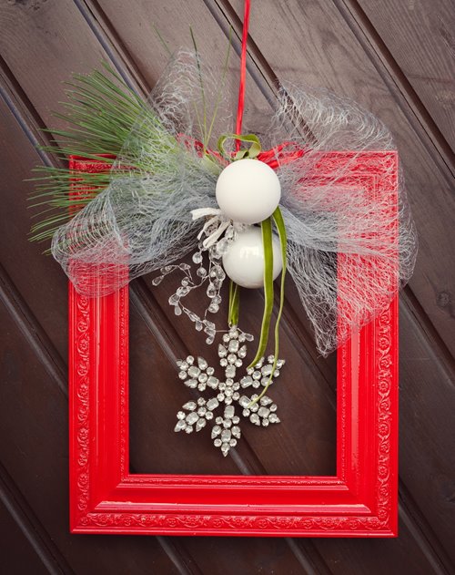 Válí se vám doma starý rám? Výborně! Pojďte mu vdechnout ducha Vánoc. Oprýskaný rám přetřete barvou nebo přestříkejte sprejem v barvě, která vám zapadne do interiéru, ozdobte vánočními dekoracemi a vystavte. Jednoduché, že ano?