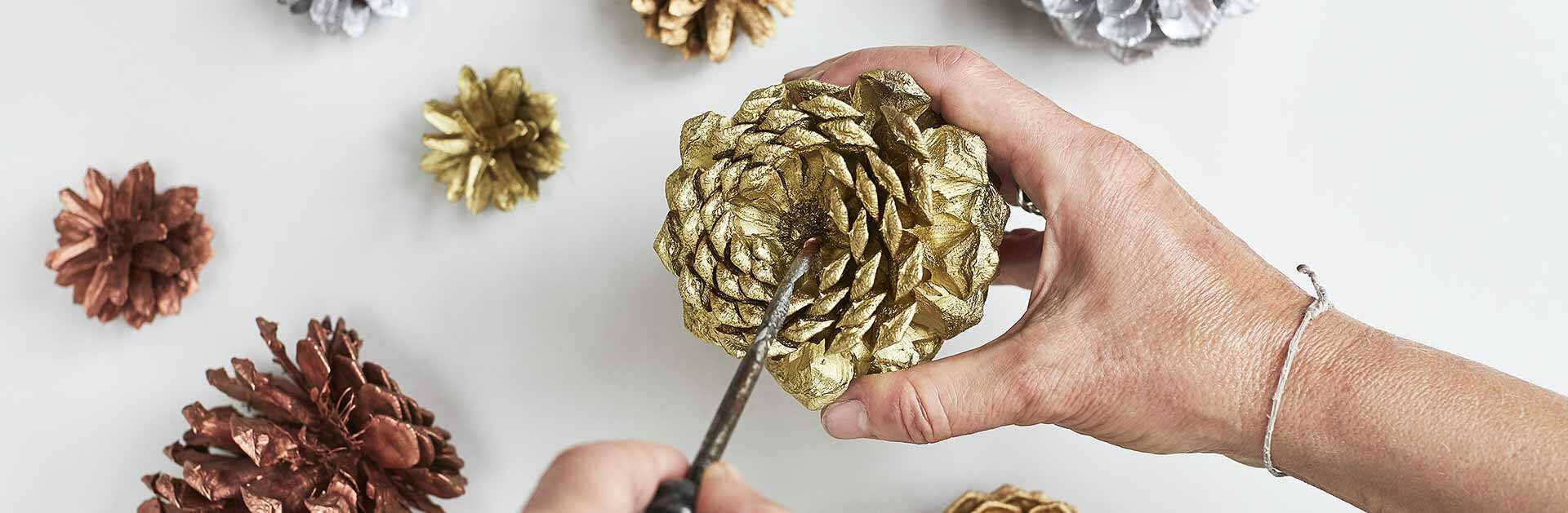 Postačí vám k tomu i zbytek barvy po malování, nebo můžete využít spreje z nabídky Dům barev. Za nás vede zlatý! Nebo si z šišek pomocí trochy lepidla vytvoříte rovnou vánoční stromek?